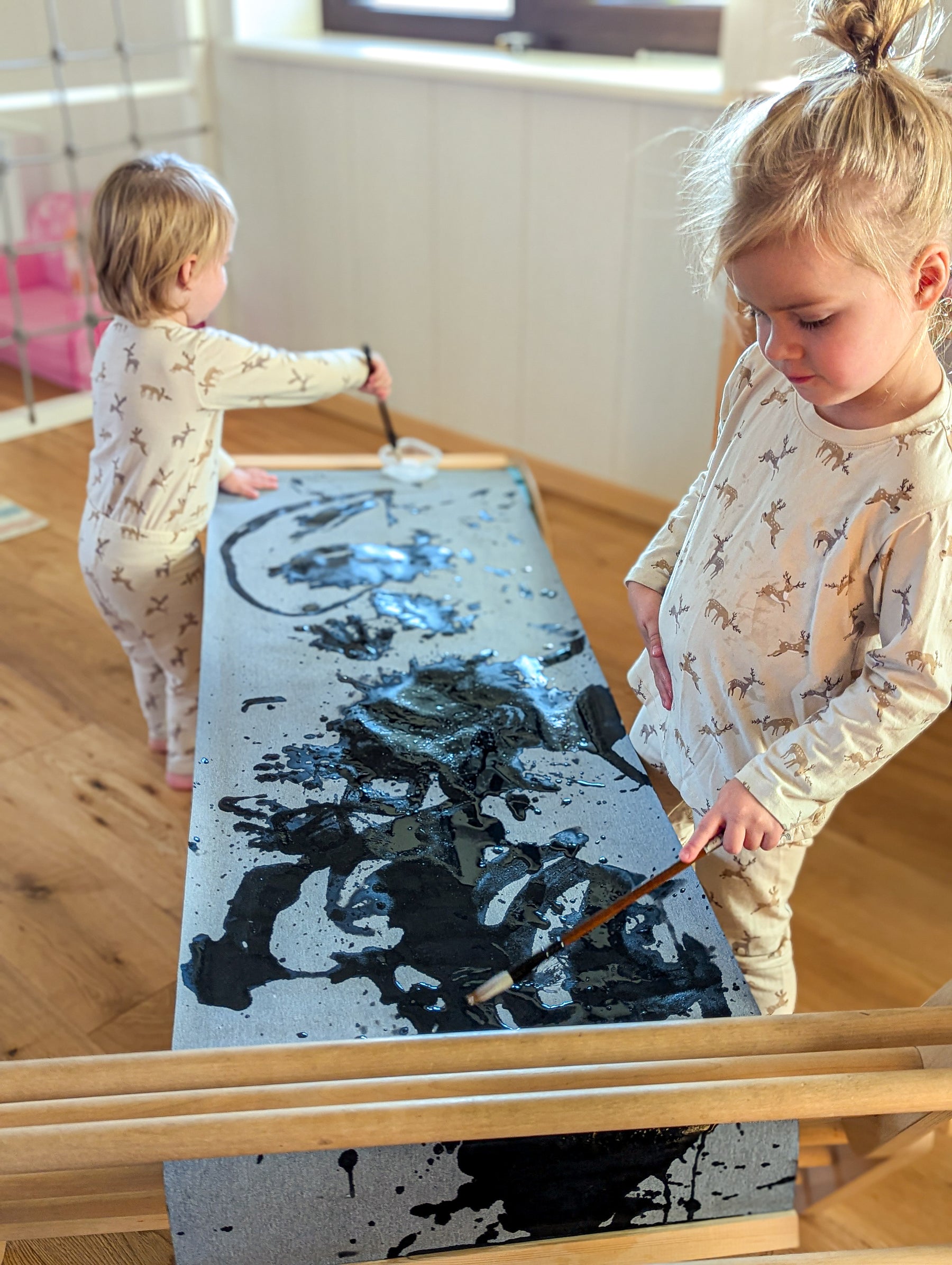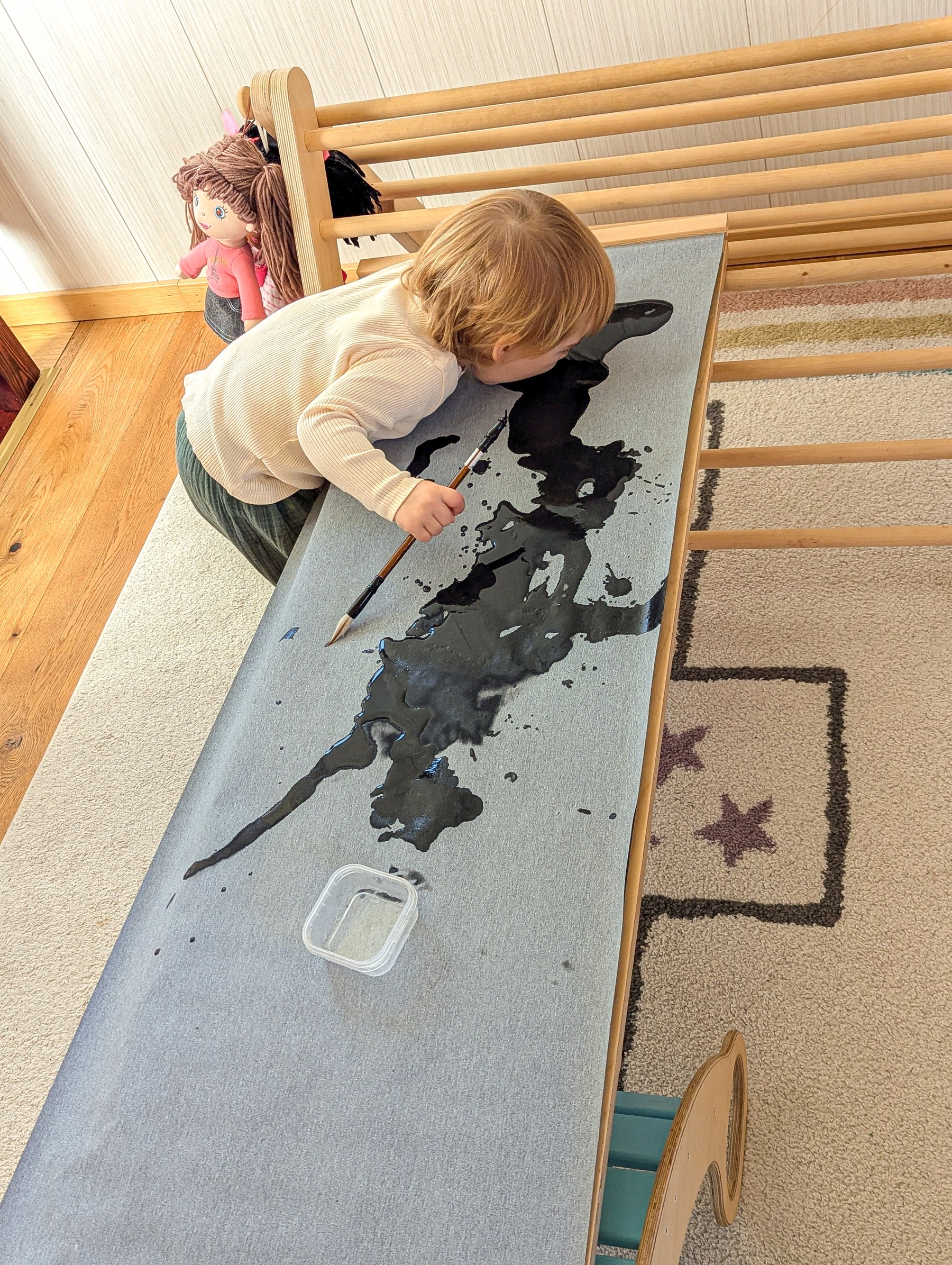Das speziell beschichtete Maltuch reagiert auf Wasser, indem es beim Kontakt eine schwarze oder dunkle Farbe erscheinen lässt. Diese Verfärbung entsteht durch die wasserempfindliche Oberfläche – es wird keine echte Farbe verwendet, sondern der Effekt entsteht durch den Kontrast des nassen Bereichs. Nach dem Trocknen verschwindet die „Farbe“ wieder, und das Tuch ist bereit für den nächsten Einsatz. Ganz ohne Farbe, ganz ohne Schmutz!